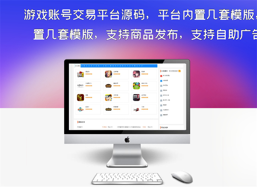 游戏账号交易平台源码,平台内置几套模版,支持商品发布,支持自助广告,支持会员注册,支持在线支付