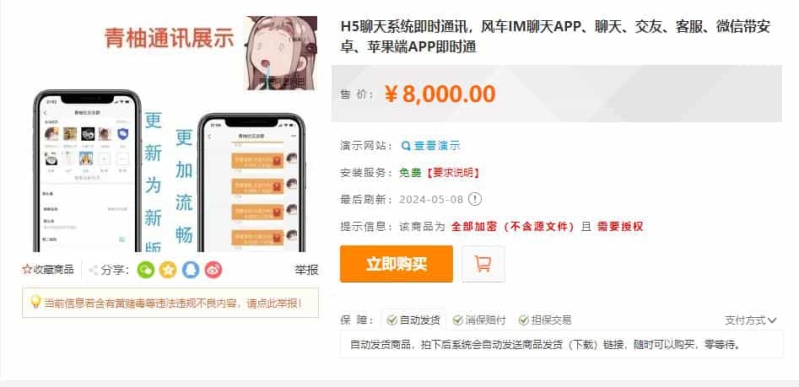 H5聊天系统即时通讯 风车IM聊天APP、聊天、交友、客服、微信带安卓、苹果端APP即时通