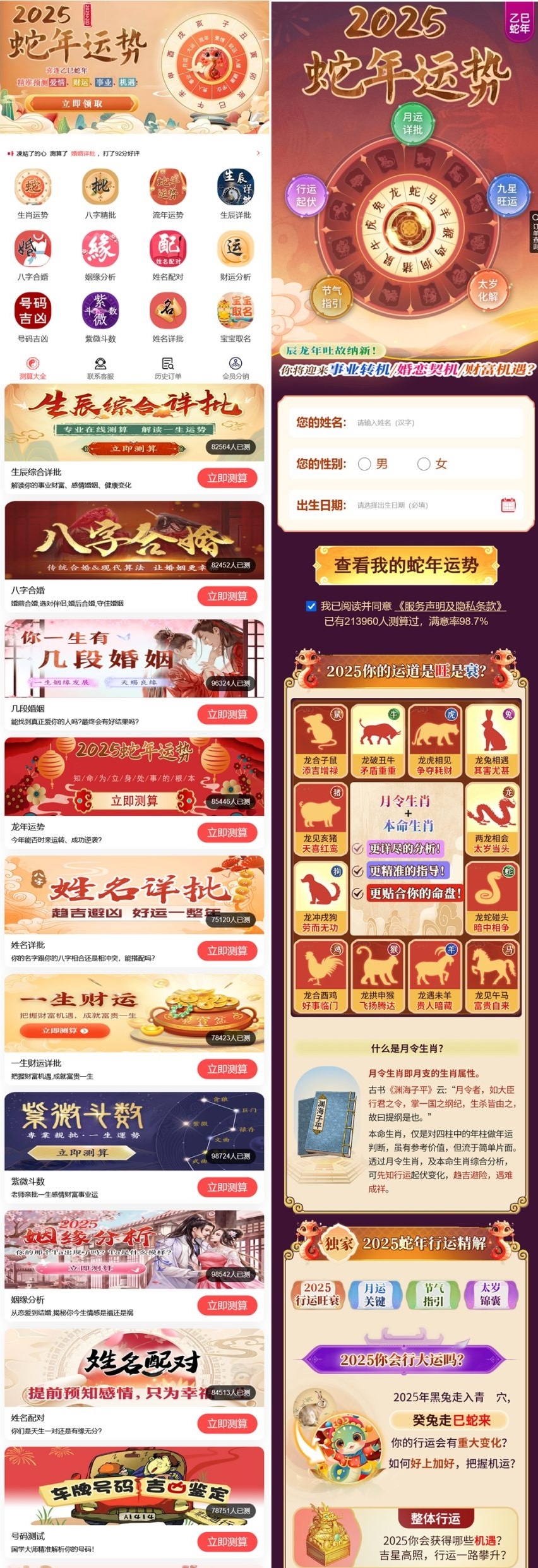 2025蛇年最新在线测算网站源码 宝宝起名源码八字精批源码算命源码