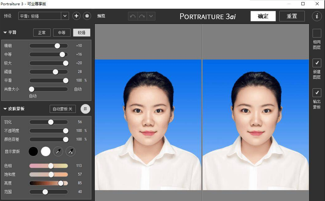 Portraiture 3.5 全面支持PS的动作,将其录制成动作后,就可以一键应用或批量处理,大幅度提高人像处理的效率!