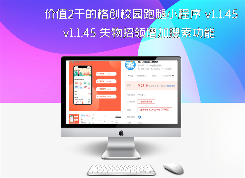 格创校园跑腿V1.1.45、小程序模块 ,多学校版本、原版加密,gengduo