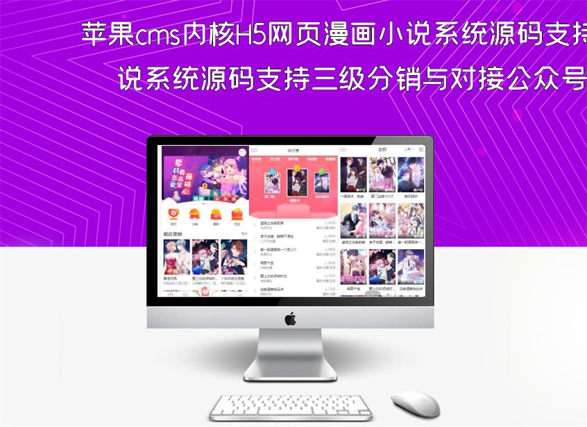 苹果cms内核H5网页漫画小说系统源码支持三级分销与对接公众号