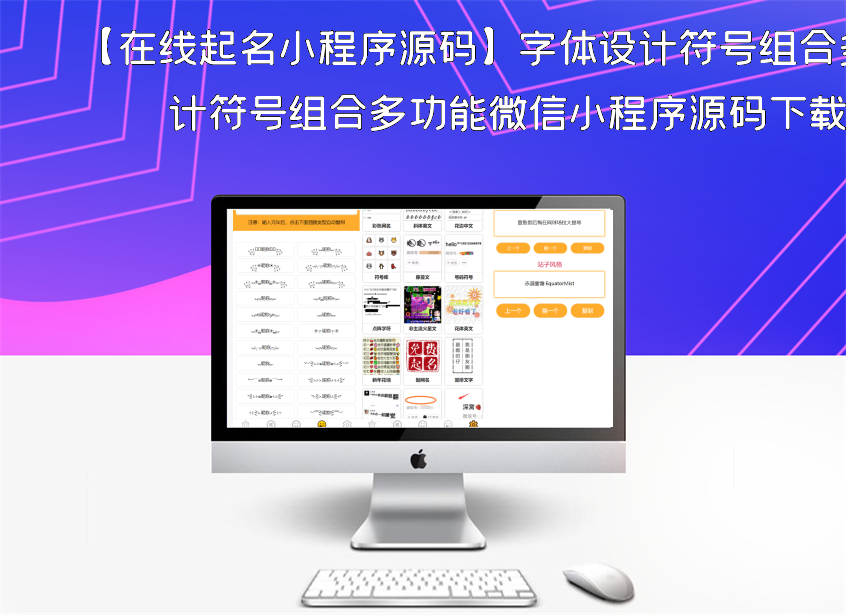 首页精品源码小程序源码【在线起名小程序源码】字体设计符号组合多功能微信小程序源码下载