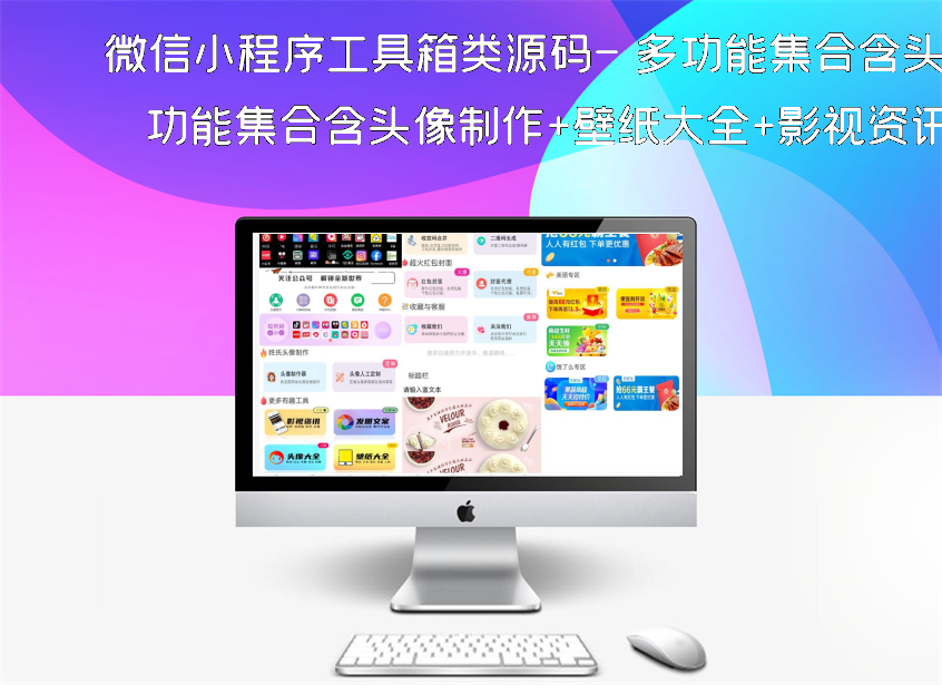 微信小程序工具箱类源码- 多功能集合含头像制作+壁纸大全+影视资讯+发圈文案外卖