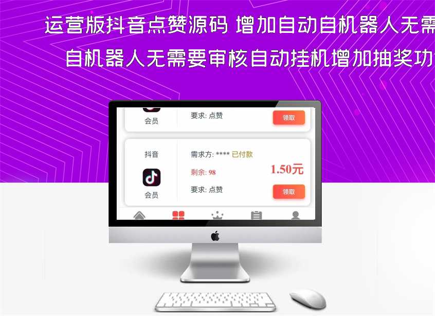 运营版抖音点赞源码 增加自动自机器人无需要审核自动挂机增加抽奖功能等