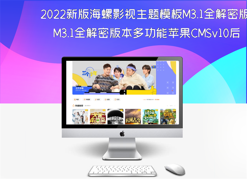 2022新版海螺影视主题模板M3.1全解密版本多功能苹果CMSv10后台自适应主题