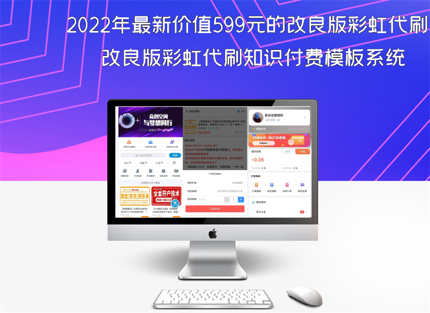 2022年最新价值599元的改良版彩虹代刷知识付费模板系统