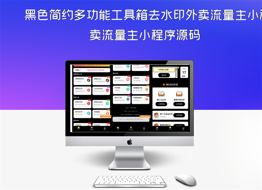 黑色简约多功能工具箱去水印外卖流量主小程序源码