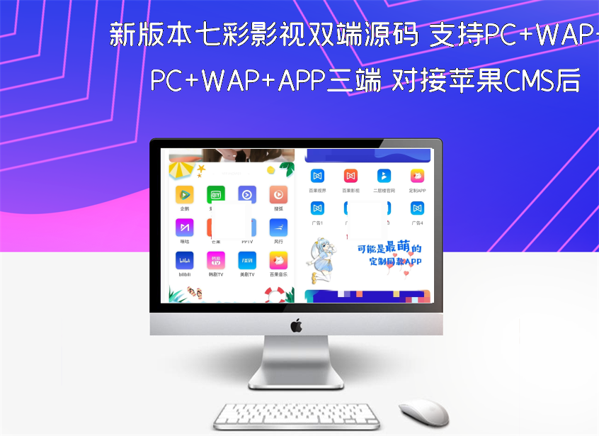 新版本七彩影视双端源码 支持PC+WAP+APP三端 对接苹果CMS后台