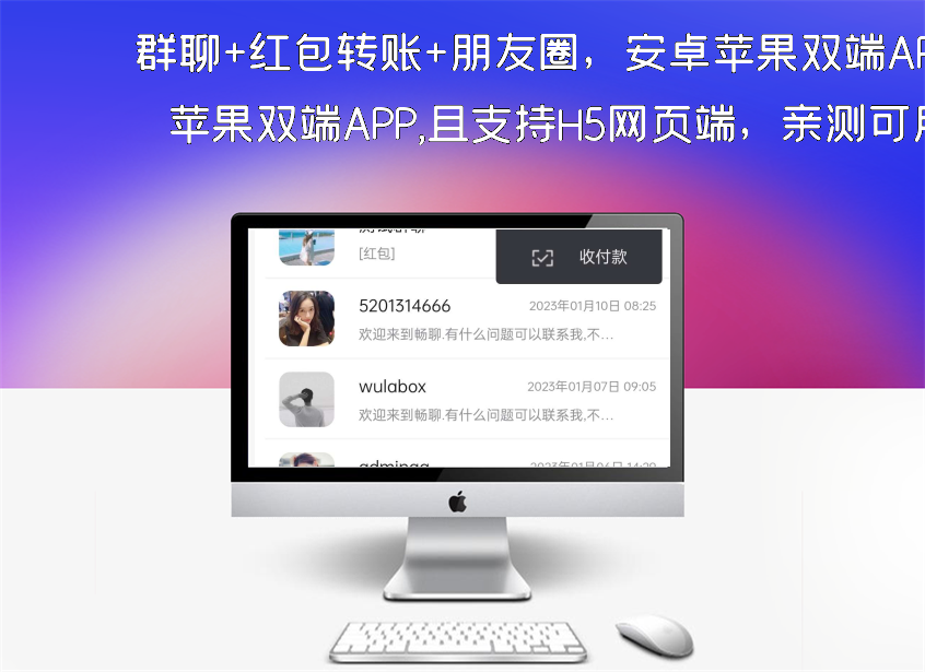 群聊+红包转账+朋友圈,安卓苹果双端app,且支持H5网页端,亲测可用!
