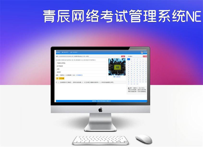 青辰智能网络考试管理系统NES采用功能强大、高效灵活的B/S 架构模式,先进的HTML5技术作为前端开发,用户可通过PC、手机、平板等终端进行访问。具有高度的可扩展性,被授权的考生不管身处何地,只要可以使用网络浏览器,就可通过网络登录在线考试系统,参加在线学习、练习、考试等;系统实现了按题型随机抽题组卷、在线考试、题库管理、系统管理的功能,即考即显分数。