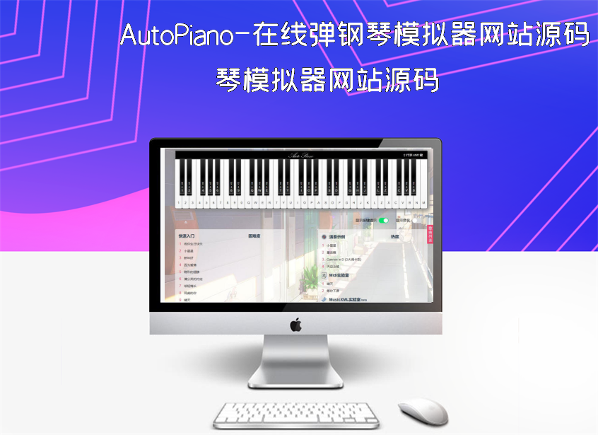 AutoPiano-在线弹钢琴网站源码,在线钢琴模拟器,自由在线弹奏虚拟钢琴,它也是所有人的绝佳音乐平台,此源码仅用于学习目的。