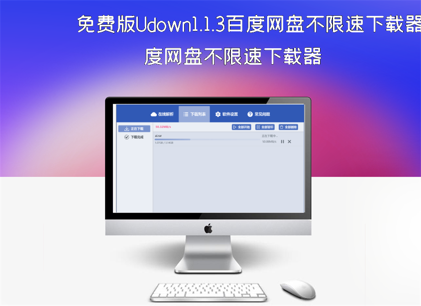 免费版Udown1.1.3百度网盘不限速下载器