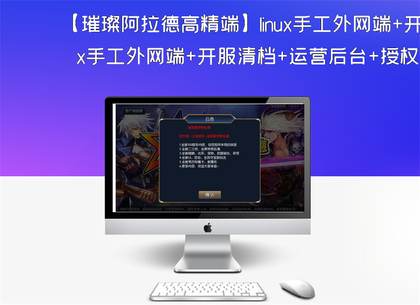 首页精品源码游戏源码【璀璨阿拉德高精端】linux手工外网端+开服清档+运营后台+授权GM后台+双端+亲测视频教程