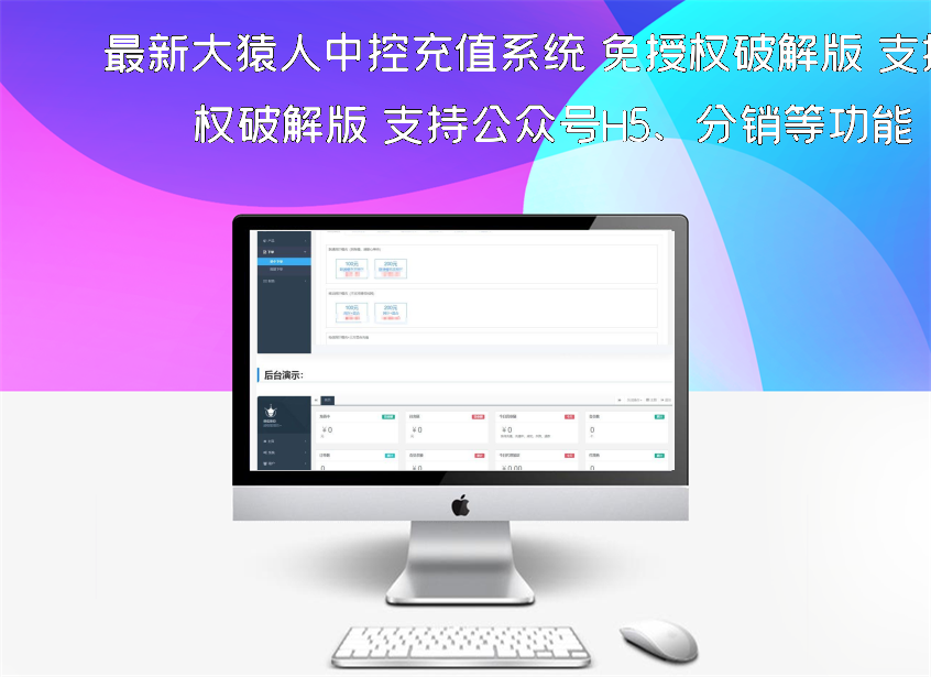 最新大猿人中控充值系统 免授权破解版 支持公众号H5、分销等功能