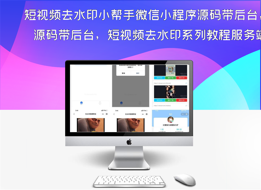 短视频去水印小帮手微信小程序源码带后台,短视频去水印系列教程服务端源码