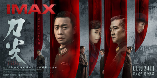 谍战巨制《刀尖》由高群书执导,张译、黄志忠、郎月婷领衔主演,成泰燊、沙溢、高捷、金世佳、李淳、曾梦雪主演,聂远、黄璐特别出演。影片将于11月24日登陆全国IMAX影院。