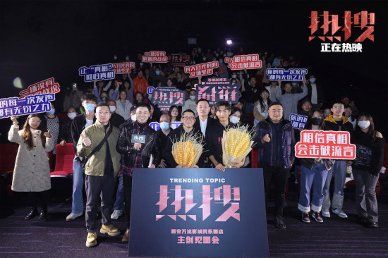 1905电影网讯 由忻钰坤执导,周冬雨、宋洋、袁弘领衔主演的电影《热搜》正在热映中。影片上映六天,累计票房5395万,收获了猫眼平台9.2分,淘票票平台9.3分的成绩。昨日,《热搜》开启“一路发声”二轮全国路演,来到了西安,导演忻钰坤、演员宋洋来到路演现场与观众们进行映后交流。导演表示西安是自己电影之梦出发的地方,这次回到这里路演有一种“带着电影回家的感觉”。