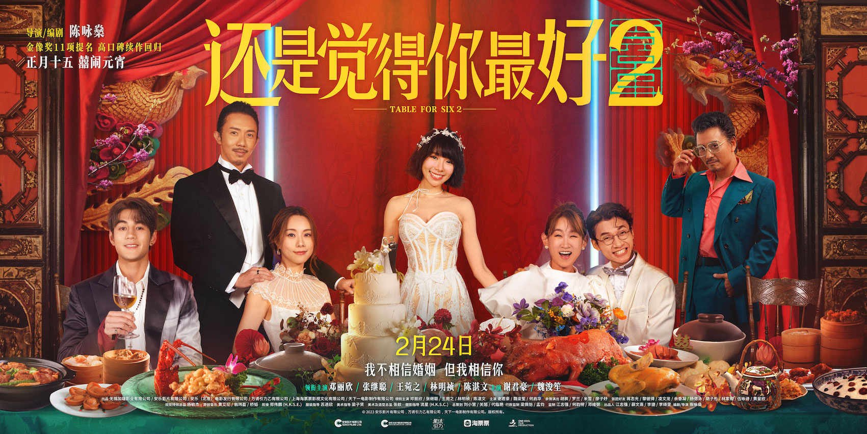 电影《还是觉得你最好2》曝光“陈家有囍”定档海报,故事延续前作从饭桌来到了婚宴,恐婚男女们阴差阳错进入婚姻这场爱的冒险局。陈家二哥(张继聪 饰)向“前大嫂”Monica(邓丽欣 饰)求婚、处于“情感休渔期”的猪猪(王菀之 饰)和三弟(陈湛文 饰)也突然决定闪婚,而落单的万人迷喵喵(林明祯 饰)的感情方向又将何去何从更值得期待。原班人马回归再给大家献上一出抓马十足的婚礼修罗场。而“婚礼宾客”谢君豪、魏浚笙,以及胡枫、罗兰、米雪等一众港派TVB熟脸笑星齐聚,更为本片的地道港味保驾护航。