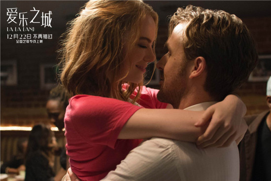 对于每一位普通人来说,不管是影片中塞巴斯汀与米娅之间热烈纯真却最终无法相携到老的爱情,还是互相鼓励、决不放弃的逐梦历程,都极具现实感与强共鸣。故事里,一个是为了实现演员梦而屡遭试镜失败打击的普通女孩,一个是拥有音乐天赋却只能妥协于现实的爵士乐手,一次次的相遇使二人命运不可避免地缠绕在一起。奔涌而至的爱意和高度契合的精神世界,决定了二人既是彼此的情感伴侣又是相互汲取能量的追梦搭档。然而随着故事发展,二人之间的分歧也日益增多,炽烈的爱情之火逐渐被冷冽的现实浇灭,“爱与面包”的残酷难题狂引年轻观众共情。