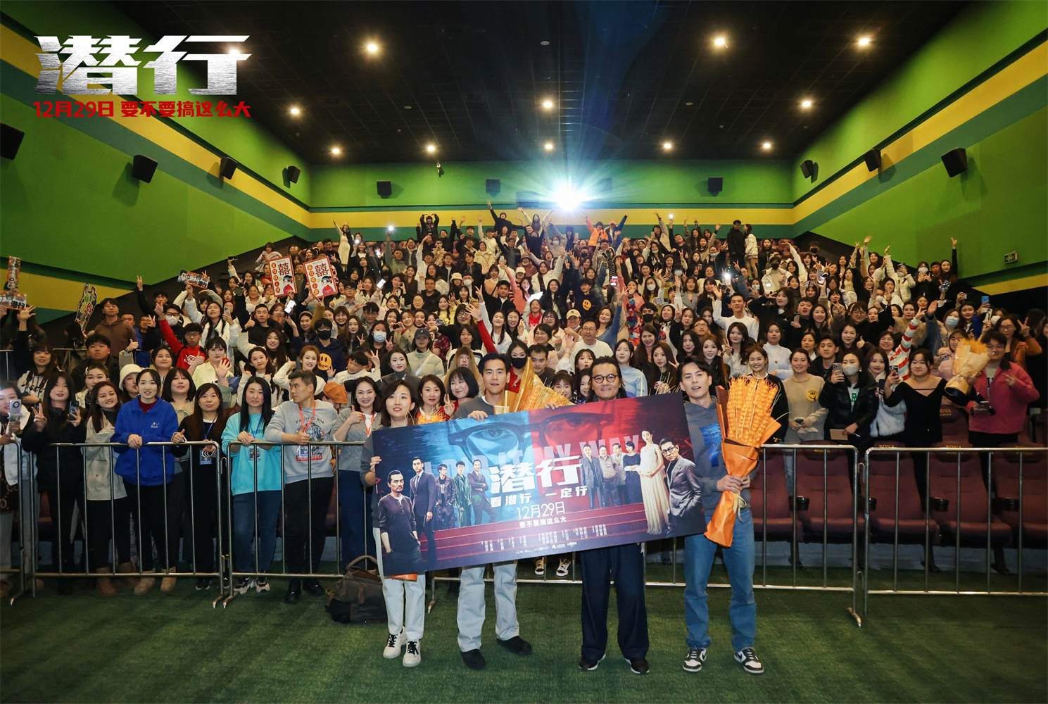 共5张1905电影网讯 近日,犯罪动作电影《潜行》路演行至青岛,总制片人李亚平、演员林家栋、彭于晏、朱鉴然现身映后互动。