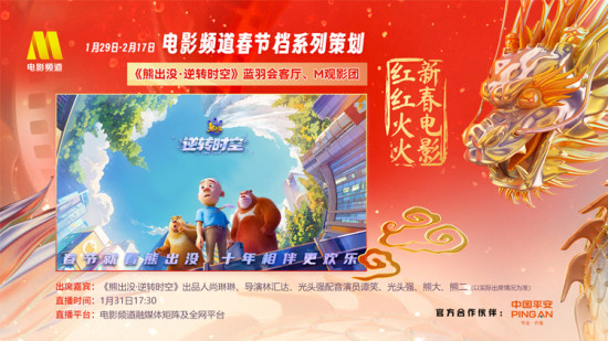 1905电影网讯 电影频道系列策划“新春电影红红火火”预热直播精彩继续,电影《熊出没·逆转时空》将亮相直播,“熊粉”狂喜,十年之约迎来新体验。
