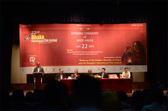 本届达卡国际电影节中国主宾国“广角”(Wide Angle)单元开幕式于当地时间1月22日下午,在孟加拉国家博物馆举行,中国驻孟加拉国大使姚文、孟加拉国社会福利部部长莫尼等出席活动。