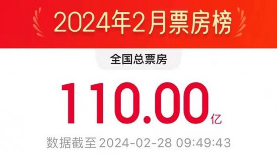 1905电影网讯 票房再创新高!据猫眼专业版数据显示,截至2月28日9时49分,2024年2月总票房(含预售)破110亿,超越2022年同期,升至中国影史单月票房榜第三位。