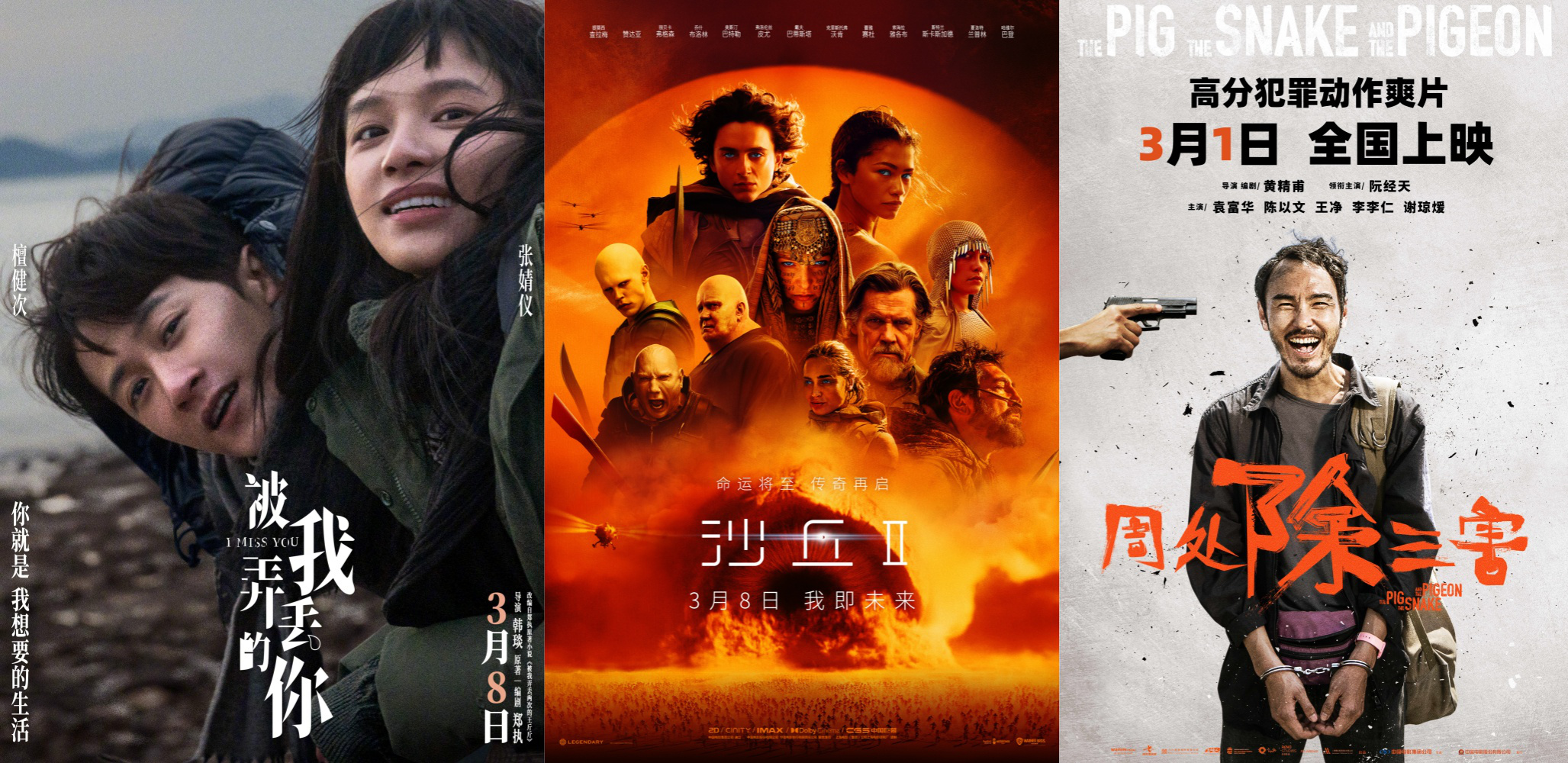 1905电影网专稿 2024年第11周(3月11日-3月17日),内地大盘报收约5.4亿,数据较此前一周有所回落。《周处除三害》依然保持着相当热度,蝉联周榜冠军,累计票房已成功突破5亿。维伦纽瓦执导的《沙丘2》紧随其后,累计2.6亿票房也帮助影片暂时成为2024年进口片票房第一。《周处除三害》破5亿 《沙丘2》将超前作登顶外片年榜《新造的人》旋律还不绝于耳,正如《周处除三害》持续不减的热度。开画第三周,该片依然保持住了每一个单日票冠,也让自己的累计票房成功突破了5亿大关。无论是点映阶段的口碑发酵,还是上映后围绕众多影片主创、内容趣味点的成功营销,《周处除三害》取得的成绩都让它成为一个值得思考的案例。位居次席的《沙丘2》同样凭借过硬的影片质量,在过去一周引发了影迷、市场的更多关注,数据较上映首周小幅减少,以14.5%的排片取得了占比超21%的票房。导演维伦纽瓦在康复后重新回归参与中国行宣传,与郭帆、陈思诚等电影人以及中国观众互动,也助力《沙丘2》进一步出圈。目前影片累计票房突破2.6亿,即将超越前作《沙丘》第一部的2.62亿。同时,这个数据也让《沙丘2》暂时登上了2024年进口片票房第一之位。周榜3至5位归属《被我弄丢的你》,以及两部新片《灿烂的她》《功夫熊猫4》。其中,《功夫熊猫4》凭借点映目前已经拿到超8000万票房,足见经典IP的强大号召力。第12周:《功夫熊猫4》强势来袭 陈都灵李一桐《堡垒》上映从点映阶段即有较好市场表现的《功夫熊猫4》,即将于周五登陆院线。此番,神龙大侠战队的配音阵容有了新的变化,黄渤、杨幂、蒋欣的搭档能否带给喜欢《功夫熊猫》系列的观众足够惊喜?由陈明昊、郭晓东、陈都灵、李一桐等人演绎的《堡垒》也将同步与观众见面,快节奏的叙事风格,也将赋予谍战题材新的变化。
