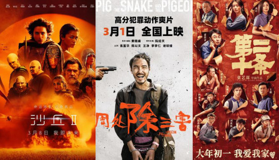 1905电影网专稿 2024年第10周(3月4日至3月10日)中国内地电影市场周票房为8.19亿元。当周市场总出票张数1971.5万张,放映总场次254.6万场,平均票价41.5元。周票房:《周处除三害》首夺周冠 《沙丘2》破亿伴随《沙丘2》等多部新片的入市,以及《功夫熊猫4》、《灿烂的她》的点映,内地电影市场大盘票房主力军位置,开始向新片倾斜。经过上周的口碑发酵,当周《周处除三害》连续7天获得单日票房冠军,毫无意外地成为周票房冠军,《沙丘2》、《第二十条》紧随其后。口碑在线,热搜不断之下,《周处除三害》以25153.28万元票房成为当周周票房冠军。该片成为内地影市春节档之后的第一部黑马之作。按照当前票房走势,影片最终票房将大概率突破5亿元大关。《沙丘2》故事宏大,视效震撼。目前,中国内地电影市场资深影迷对于影片评价较高,对于普通观众而言存在一定观影门槛。《沙丘1》的适时重映,有利于普通观众更好了解影片故事背景及人物设定等信息。《沙丘2》上映首周取得14158.66万元票房,位居当周周票房排行榜第二名。张艺谋执导的《第二十条》,成为长线票房续航能力最强的春节档电影。优秀的口碑与巨大的社会话题效应,成为普通观众不断入场的主要原因。当周影片以10348万元票房成为周票房排行榜季军。目前,影片累计票房已达23.76亿元。在口碑佳片与进口大片的夹击下,由檀健次、张婧仪主演的中小成本爱情片《被我弄丢的你》发挥稳定。该片上映当周取得9656.26万元周票房。目前,影片累计票房即将突破亿元大关。春节档其他老片方面,《飞驰人生2》当周取得8572.99万元票房,累计票房突破33亿元大关。《热辣滚烫》当周取得4446.63万元票房,累计票房已达34.4亿元。值得一提的是本周两部点映电影票房表现可圈可点。黄渤、杨幂等参与中文配音的《功夫熊猫4》,取得3838.4万元点映票房。惠英红、刘浩存、张子贤主演的《灿烂的她》,拿下413.48万元点映票房。第11周:《红毯先生》等12部新片入市本周将有12部新片内地上映。其中,国产片11部,进口片1部。国产新片中,宁浩执导,刘德华主演的《红毯先生》,惠英红、刘浩存等主演的《灿烂的她》,市场热度与关注度相对较高。进口片中,首部太空实拍电影《挑战》值得关注。