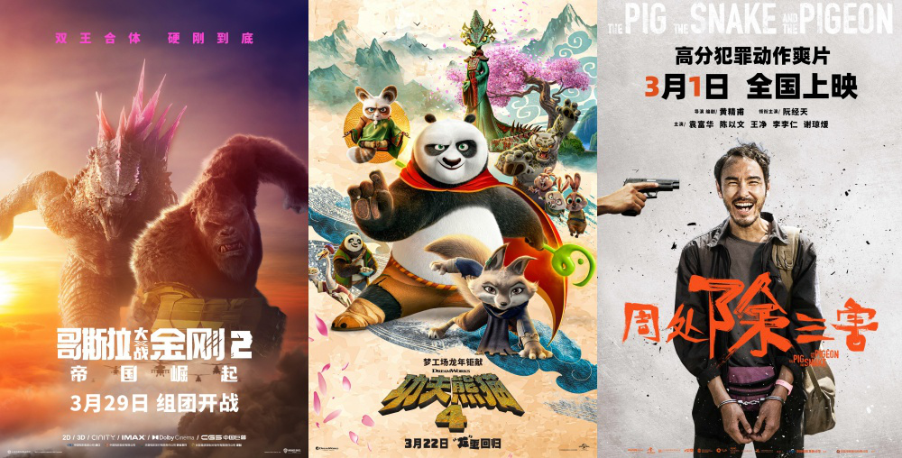 1905电影网专稿 2024年第13周(3月25至3月31日)中国内地电影市场周票房为5.5亿元。当周市场总出票张数1305.1万张,放映总场次254.4万场,平均票价41.2元。周票房:《哥斯拉大战金刚2》首夺周冠 《功夫熊猫4》破2亿当周上映新片中,进口怪兽电影《哥斯拉大战金刚2:帝国崛起》成功掀起一波观影热潮。影片视觉特效带给观众观感的震撼,一定程度弥补了剧情不足的遗憾。《周处除三害》周一至周四连续4天夺得内地影市单日票房冠军,长线票房续航能力十足。值得一提的是,在持续一周的大规模点映之下,撤档再映的《我们一起摇太阳》仍有一定票房号召力。视效大片《哥斯拉大战金刚2:帝国崛起》,无疑是内地影市当周最值得期待的电影之一。2021年上映的首部作品,累计票房高达12.32亿元。续集之作上映首周以31708.69万元票房,成为当周周票房冠军。同时,该片也是2024年内地影市首周票房表现最好的进口电影。作为系列作品第四部,《功夫熊猫4》叙事结构和故事内容,并没有给市场带来太多惊喜。影片豆瓣评分6.5分,创造了系列作品口碑新低。影片内地公映第二周以6088.42万元票房,成为当周周票房亚军。《周处除三害》内地公映第五周,仍然吸引了不少观众走进电影院。合适的档期选择,成为这部小成本口碑佳作票房大卖的重要原因之一。当周,该片以4178.68万元成为周票房排行榜季军。目前,影片累计票房已达6.43亿元,该片引进方在商业投资回报方面,可谓以小博大。撤档再映的《我们一起摇太阳》选择周六开画,该片上映首周斩获4004.92万元票房,位列当周周票房排行榜第四名。按照目前票房走势,影片二次上映票房超越春节期间票房已无太多悬念。因此该片也有望成为当前市场唯一一部二次上映票高于首映的撤档再映院线电影。目前,影片累计票房已达1.58亿元。奇幻视效巨作《沙丘2》,当周取得2009.17万元票房。宏大的世界观设定,被资深影迷津津乐道之余,也提高了路人观众的观影门槛。目前,影片累计票房已达3.34亿元。值得一提的是春节档老片《第二十条》、《飞驰人生2》,也跻身当周周票房排行前十名。春节档头部电影的票房续航能力,远高于其他档期同质作品。第14周:《你想活出怎样的人生》等9部新片入市本周将迎来春节档之后首个黄金档期清明档。目前,清明档已定档9部新片,国产片7部,进口片2部均为动画电影。其中,国产片方面,《黄雀在后!》、《草木人间》市场关注度较高。万玛才旦遗作《雪豹》,关注人与动物如何相处的故事。包贝尔自导自演的《大“反”派》,则是档期唯一一部喜剧片,类型优势明显。进口片中,宫崎骏新作《你想活出怎样的人生》无疑是清明档最具辨识度影片之一。该片也是继《千与千寻》之后,让宫崎骏再次摘得奥斯卡最佳动画长片奖。影片也将成为档期票冠有力争夺者。