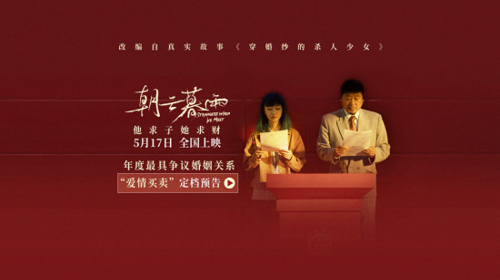 1905电影网讯 改编自真实故事《穿婚纱的杀人少女》,由韩三平总监制,张国立执导,范伟、周冬雨领衔主演,宋佳、邓飞友情出演的电影《朝云暮雨》宣布将于5月17日全国上映,并发布“爱情买卖”版定档预告、“婚姻交易”版定档海报,两个刑满释放人员“他求子她求财”,即将上演年度最具争议的婚姻关系。影片中范伟饰演的老秦思想迂腐,一心求子,只为给死去的父母尽孝;周冬雨饰演的常娟主动接近老秦,骗婚求财,背后似乎隐藏着更深的秘密。影片已入围第十四届北京国际电影节“天坛奖”主竞赛单元。年度最具争议婚姻关系 改编自真实故事《穿婚纱的杀人少女》老秦服刑30年后出狱,只想传宗接代娶妻生子,开启新的人生。在电影释出的定档预告中,有两次入狱经历的他在相亲市场处处碰壁,最终无奈去女子监狱门口进行自我推销,在一旁观察许久的常娟主动提出结婚。他求子,她求财,“同是天涯沦落人”的两人开始了一段各怀目的的利益婚姻。能轻松识破“仙人跳”的老秦,这次能否看穿常娟的骗婚套路?无家可归换来的150万拆迁款,还能否顺利保住?求财心切的常娟又背负着怎样不为人知的秘密?影片改编自《穿婚纱的杀人少女》,是真实故事计划第二届非虚构写作大赛中的获奖作品。据悉,该故事是作者夏龙龙从狱警口中听来的一桩奇事。在一次偶然的机会下,他浏览到老秦的日记,被老秦与常娟的反常婚姻和离奇生活经历深深打动,决定将背后的故事真实地呈现给大家。文章一经发布便在网络上引起大量讨论,不少网友对于老秦与常娟的婚姻买卖产生了极强的好奇心。此次电影又将如何讲述这段利益婚姻,不禁让人拭目以待。入围北影节“天坛奖”主竞赛单元 张国立评价范伟周冬雨“非他们不可”电影《朝云暮雨》是张国立导演精心打磨数年的口碑力作,在近期举办的第十四届北京国际电影节中,成功入围“天坛奖”主竞赛单元,可见其不俗品质。两人合作演绎利益交换的夫妻让不少观众大呼惊喜,然而选角过程并非一蹴而就。张国立导演透露,他曾有过很长时间的纠结,担心老秦和常娟的角色经历太过特殊,担心演员们无法演绎出角色的复杂性。但电影一经开拍,张国立导演便完全放下了顾虑,“这两个演员都对自己的角色把握得十分妥帖,如果现在再让我来选演员,我会说非他们两个不可。”在拍摄现场,张国立导演常常鼓励大家“放手演”,因为自身经验足够丰富,则非常了解演员们需要有一定的发挥空间。这也让人更加期待范伟、周冬雨两位实力派演员的彼此交锋,势必会为观众带来一场演技盛宴。电影《朝云暮雨》由韩三平总监制,张国立执导,也好编剧,范伟、周冬雨领衔主演,宋佳、邓飞友情出演,将于2024年5月17日全国上映。