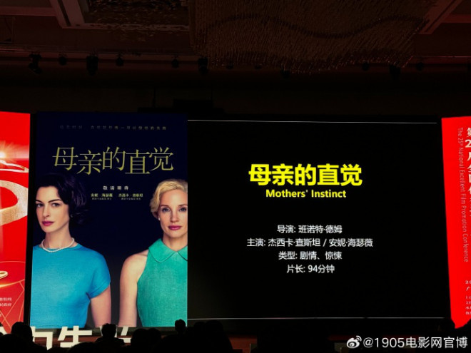 1905电影网讯 4月10日,全国电影(广州)交易会暨第25届全国优秀影片推介会,中影推荐环节官宣惊悚剧情片《母亲的直觉》即将引进,影片由“劳模姐”杰西卡·查斯坦、安妮·海瑟薇主演。本片翻拍自2018年同名比利时电影,原版基于Barbara Abel所著小说《Derrière La Haine》改编。原导演、编剧奥利维尔·马塞特-德帕西继续执导该片。影片聚焦60年代的家庭主妇,闺蜜兼邻居爱丽丝和席琳都过着田园诗般的传统生活,有修剪整齐的草坪、成功的丈夫和同龄的儿子。 一场不幸的事故后,完美和谐的生活突然被打破了,内疚、猜疑和妄想症将她们的姐妹关系拆开,随着母性本能揭示了其阴暗面,一场心理上的意志之战“打响”。