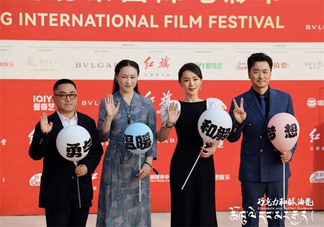 1905电影网讯 4月18日,第十四届北京国际电影节在北京隆重开幕。治愈系剧情片《巧克力和酥油花》主创亮相红毯,导演陈颖心和监制张冀,携演员车永莉、黄俊鹏共同出席。红毯上,各位主创手拿彩色气球,尽显天真童趣一面,让人耳目一新。而气球上“勇气”、“温暖”、“梦想”、“和解”等词语也传达出本片的治愈系特点。电影《巧克力和酥油花》是导演陈颖心的首部电影长片作品,讲述了成长背景迥异的两个少年唐宇(赵子毅 饰)和桑丹(孟滚 饰)偶然相遇,并在广阔无垠的青藏高原上结伴同行的故事。片名中的 “巧克力”象征着幸福、物质和浪漫,是城市少年唐宇的代名词;而“酥油花”则象征着精神、艺术和信念,指代执着追梦的甘孜少年桑丹。两个孩子为何会独自踏上旅途,他们在旅途中会有怎样的遭遇,又能否寻得心中所求,引发好奇。采访环节上,张冀分享了他对好作品的理解:“艺术是没有标准的,是很多元的。好作品是能打动人的,能让人获得美的体验。”导演陈颖心谈及对两个主要角色的创作时表示,“两个孩子的相识相处过程其实反映了不同文化的碰撞和融合。希望这部片子给大家带来一些积极正面的东西。”电影《巧克力和酥油花》由张冀监制,陈颖心导演、编剧,车永莉、黄俊鹏、孟滚、赵子毅主演,影片将于7月9日上映。