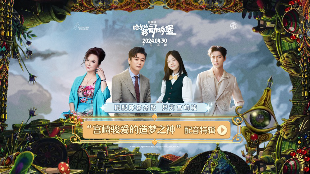 1905电影网讯 4月23日,电影《哈尔的移动城堡》官宣蔡明、杨恩又、肖央、阿云嘎加入电影中文版配音阵容,并发布角色配音海报及“宫崎骏爱的造梦之神”配音特辑。根据目前释出的7人配音阵容来看,于适配音哈尔,田曦薇配音苏菲,蔡明配音荒野女巫,尹正配音卡西法,杨恩又配音马鲁克,肖央配音国王,阿云嘎配音稻草人。配音阵容实力与惊喜兼具,期待他们一同诠释宫崎骏的浪漫与美好。宫崎骏角色塑造鲜活多元 配音演员用实力还原经典宫崎骏笔下的配角们总是多元且鲜活,它们有着各自的性情与能量。也恰如蔡明在配音特辑里说“宫崎骏用孩子的眼睛看世界,会让你相信这个世界有爱和希望”,正是因为这份简单纯粹,让荒野女巫、马鲁克、国王、稻草人这些看似不起眼的配角,在这个可爱、不失童趣的宫崎骏奇幻世界中都有着各自的闪光点。荒野女巫是难以被定义的反派,马鲁克象征着忠诚和勇气,稻草人无言的善良和坚持给许多观众留下了深刻的印象,而象征着权力的国王与哈尔是个一体两面的存在,这一角色很好地体现了宫崎骏电影的反战态度。本片配音阵容不仅有具备丰富演艺经历且都有过动画电影配音经历的蔡明、肖央这样的实力派演员,也有像阿云嘎、杨恩又这样的惊喜配音人选。音乐剧演员出身的阿云嘎不仅具备优良的声音条件也对声音有着极佳的控制力;为马鲁克配音的小演员杨恩又因出演《人生大事》而被观众熟知,极具灵性的她对情绪戏的把控让人眼前一亮。好的动画角色与好的配音演员相互作用,才值得观众期待。因为宫崎骏笔下的角色塑造得足够丰满,也让配音演员用声音演绎时足够过瘾,蔡明直言非常喜欢给动画作品配音,爱情、仇恨与欢乐都在片中发挥到极致;肖央在配音特辑中表示“宫崎骏有一颗成年人的童心”,因此无论是孩童还是成年人都能在《哈尔的移动城堡》中找到乐趣所在;杨恩又精辟总结出配音的本质是在用声音演戏;阿云嘎在配音中“再来一次”的尝试,是对创作作品上追求完美的宫崎骏最好的尊重。四个不同的角色,四位配音演员,各自的角色出彩,声音也出彩,《哈尔的移动城堡》在选择配音演员方面下足了功夫,此次配音成片十分令人期待。与此同步释出的配音海报,用哈尔卧室中的魔法摆件加以装饰,完美呈现出“奇幻”这一主题,透过层层云雾仿佛已跟随配音演员一同进入宫崎骏的奇幻世界。大银幕看宫崎骏顶级浪漫 共享多重美好的绝妙体验今年是《哈尔的移动城堡》公映的二十周年,这不仅是一次品味经典的观影机会,更是一场仪式感十足的盛事。无论是哈尔与苏菲双向奔赴的爱情故事,还是卡西法、荒野女巫、马鲁克、稻草人、国王等令人印象深刻的配角,宫崎骏用简单却深刻的情感表达,带给我们浪漫治愈的绝妙享受。“细节狂魔”宫崎骏精心构建的动画世界经得起大银幕考验。在宫崎骏的笔下,每一帧画面都充满诗意,他的电影也总能以最简单的方式触动观众心弦。除了画面具有美感,给人以视觉上的美好感受,宫崎骏的故事、情感表达也是美的。《哈尔的移动城堡》不仅仅是一部爱情电影,更是一场关于成长、勇气与内心转变的旅程。哈尔和苏菲的故事超越了浪漫的范畴,两人在相遇相知过程中激活的人物弧光启迪观众成长,使观众在感动中找到共鸣。当久石让的经典曲目《人生的旋转木马》响起,浪漫的种子由此在观众心里种下,一场视听和情感的盛宴也终将让人难忘。《哈尔的移动城堡》预售现已开启,4月30日,让我们一起共赴宫崎骏二十年之约,在电影中感受宫崎骏带来的简单感动与浪漫治愈。
