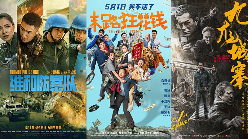 1905电影网讯 据猫眼专业版数据,截至5月3日13时10分,2024年五一档新片总票房(含预售)突破10亿元大关!《维和防暴队》《末路狂花钱》《九龙城寨之围城》分别以2.62亿、2.01亿、1.97亿的票房成绩暂列前三位。截至5月3日13时50分,2024年五一档(5月1日-5月5日)总票房破9亿!《维和防暴队》《末路狂花钱》《间谍过家家 代号:白》领跑档期票房。高燃动作大片《维和防暴队》取材自中国维和警察真实维和行动,由刘伟强监制,李达超执导,黄景瑜、王一博、钟楚曦、欧豪、朱亚文等主演。影片上映首日票房达1.35亿,创中国影史五一档国产动作片单日票房新纪录,该片自开画起,已经连续2天占据五一档票房冠军的位置。贾冰、谭卓、小沈阳等主演的喜剧电影《末路狂花钱》上映第二日实现票房逆跌,热度不断走高。截至发稿,该片突破2亿元,逐渐缩小与《维和防爆队》的差距。郑保瑞新作,古天乐、林峯等主演的格斗爽片《九龙城寨之围城》暂居五一档新片票房排行榜第三位。影片讲述了一个关于兄弟情、帮派斗、血海仇的黑帮传奇故事,有观众评价该片是“今年最极致最癫狂的动作犯罪片”。截至发稿,《九龙城寨之围城》累计票房也达到2亿元。《间谍过家家 代号:白》《哈尔的移动城堡》《没有一顿火锅解决不了的事》《穿过月亮的旅行》《猪猪侠大电影·星际行动》暂列2024五一档新片排行榜四到八位。