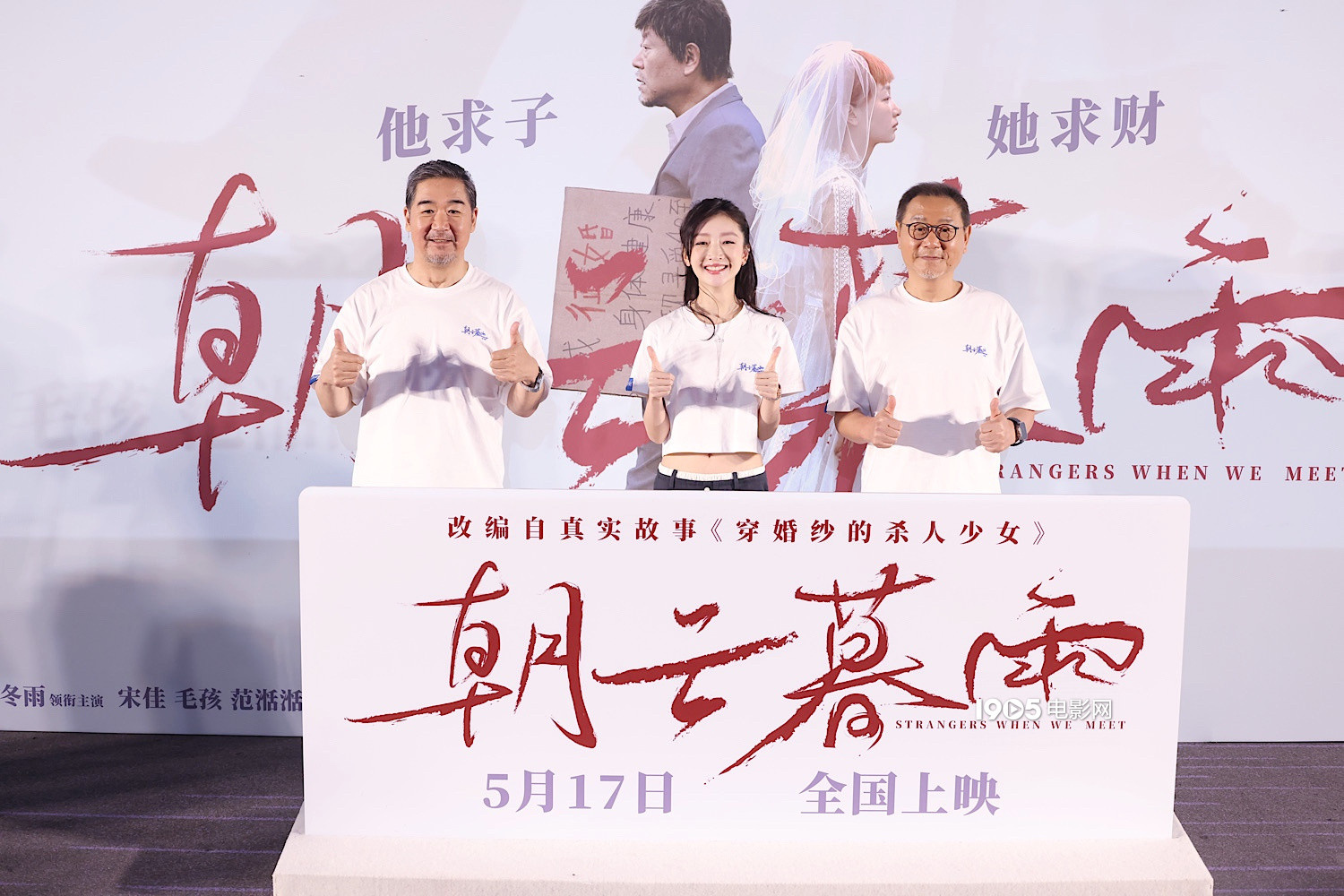 1905电影网讯 此前入围北京国际电影节的电影《朝云暮雨》,5月13日在北京举办首映礼,导演张国立携主演范伟、周冬雨亮相映后见面会,分享了电影拍摄的幕后细节。《朝云暮雨》改编自文学作品《穿婚纱的杀人少女》,讲述了刑满释放的“老秦”期待娶妻生子,开启新的人生,意外结识了同样刚刚出狱的少女常娟。一个求子,一个求财,两人开始了一段各怀目的的利益婚姻。导演张国立谈及现在的片名表示,有人认为《朝云暮雨》是形容男女之间的情感,其实他更想表达的是一如云雨天气的那种“无常”,“人生就是无常的,老秦和常娟就好像一个是朝云、一个是暮雨。”凭借《朝云暮雨》中的角色,范伟捧得了北影节天坛奖最佳男演员荣誉。在这个角色身上,我们看到了这位熟悉的演员不一样的转变。甚至在外形上,范伟也减重了30斤。而这个过程也很有趣:“因为结尾剧情我需要抱着(失去意识)的冬雨走来走去,剧组就寄给我一个50公斤的沙袋,天天练,后来再拍就很轻松。当时减到了130斤,现在135,算保持住了。”常娟这个角色对于周冬雨而言同样转变很大。她表示,这个角色身上有狠劲,是对自己的狠。因为184400的赔款是支撑她成立的东西。过程中常娟可能也几次被老秦感动想要放下执念,但最终她还是完成了自己想做的事。而《朝云暮雨》合作范伟,对于周冬雨而言也是一次“圆梦”,早在大学时代,她和身边的许多同学就是范伟的粉丝,在周冬雨眼中,范伟就像内核无比稳定的扫地僧,给合作伙伴巨大的安全感。据悉,《朝云暮雨》将于5月17日上映。