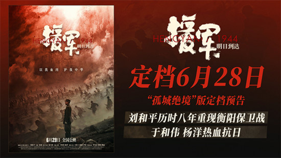 1905电影网讯 5月14日,历史战争电影《援军明日到达》发布定档预告及海报,宣布将于6月28日正式上映。该片根据抗日战争中豫湘桂战役最惨烈的一役“衡阳保卫战”为题材,由刘和平担任编剧、总导演、总制片人,张杨导演,秦天柱联合导演,于和伟、杨洋领衔主演,万茜、王劲松、尹昉领衔主演,李光洁、谭凯、曹磊特别出演。影片讲述第十军军长方先觉(于和伟 饰)率领18000名将士与衡阳4000余名同胞,面对日寇近110000大军压境,以血肉之躯坚守衡阳47天并重创日军的故事,向世界展现了中华民族抵抗侵略者的不屈与坚决。衡阳保卫战是抗日战争中唯一一次日军以6倍于我的兵力,伤亡比例3倍于我的战役,也是日本战史中记载的唯一一次日军伤亡超过中国军队的战例。这场战役间接导致了日本首相东条英机的下台。本片编剧、总导演、总制片人刘和平以《雍正王朝》《大明王朝1566》《北平无战事》等编剧作品享誉全国,身为衡阳人的他始终怀揣着一颗想要把“衡阳保卫战”拍出来让全国观众了解到这段历史的决心,在刘和平眼中,“这也是衡阳八百万人民的共同愿望。”这份使命感让刘和平从筹备到制作,耗费八年才完成这部电影。八年间,他不断寻访抗战老兵及老兵后人,收集战场故事,查阅真实影像资料,遍览档案史籍,亲临现场监督置景团队,历时4个月完成了对八十年前衡阳城中心地带的一比一场景搭建,力求最大限度展现真实的“衡阳保卫战”。此次《援军明日到达》发布的“孤城绝境”版定档预告中,全景式展现了衡阳保卫战中军民力抗日军的惨烈画面。面对即将攻城的日军,第十军军长方先觉(于和伟 饰)抱着与国土共存亡的决心下令“衡阳的民工同胞们,第十军的官兵弟兄们,务必坚守衡阳十日”。据史记载,日军为了占领交通重地衡阳,出动飞机、坦克、大炮等重型武器对衡阳城进行疯狂的轰炸,更丧心病狂的投下毒气弹。为阻断日军的一切邪恶居心,由衡阳行业工会总会长刘彪(王劲松 饰)带领的衡阳民工与第十军将士协作挖战壕、筑工事,炸断衡阳湘江公路铁路大桥等,将如同滔天浊浪般汹涌而来的日寇屡屡阻隔在衡阳城外。“衡阳就是我们第十军一万八千名将士的坟场,就是日寇的坟场!”援军迟迟未到,整个衡阳城被炮火灼烧,守城不知几日,决心却丝毫未改,“哪里还有援兵,打到最后一个人就是了”。同期发布的两张定档海报,其中一张展现军长方先觉(于和伟 饰)肃然伫立于阵地之上,身后是一众守军士兵于硝烟炮火中迎击日寇的群像,另一张则将衡阳守军视死如归的精神展现得淋漓尽致,杨洋饰演的井启第目光坚毅,他孤身一人置于战火纷飞的衡阳城中,誓要与这座城市共存亡。正是因为这群英勇无畏的衡阳守军们的浴血奋战,毛泽东主席在《解放日报》社论中曾亲自撰文称赞“守衡阳的战士们是英勇的”。
