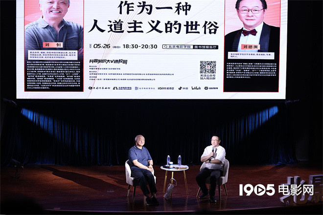 1905电影网讯 5月26日,《北影大讲堂:文学与电影》顶峰对谈:“作为一种人道主义的世俗”活动在北京电影学院图书馆报告厅成功举办。著名作家、编剧刘恒出席现场,与北京电影学院文学系教授刘德濒对谈,分享 “新现实主义题材”电影的独特创作体验与思考。刘恒著有小说《黑的雪》《逍遥颂》等;电影剧本《本命年》《菊豆》《秋菊打官司》《云水谣》《集结号》《金陵十三钗》等;电视剧剧本《贫嘴张大民的幸福生活》《少年天子》等。现场,通过VCR的方式,张艺谋、谢飞等电影人向观众致意,张艺谋说:“我和编剧刘恒合作了三部电影作品,分别是《菊豆》《秋菊打官司》《金陵十三钗》,刘恒是我认识的作家中,现实主义刻画人物功力最强的一位。”谢飞说:“通过刘恒的剧本,为电影奠定了基础,使得《本命年》这个电影能够很好的完成,把小说的东西视听化了。”作为和张艺谋合作了多次的老友,刘恒也高度肯定了张艺谋的导演才能,他介绍早年张艺谋的工作模式,并以此分享给如今的年轻人,希望大家可以学习张导身上的创作者精神。“早年时候张艺谋的创作以文学为基础,那时他大量翻阅各种各样的刊物,看到让自己有灵感的内容就立刻抓住苗头开始创作,比如《秋菊打官司》就是在一篇报刊中看到的名为《万家诉讼》的小说,第二天就联系编剧改成剧本,一个多月后就开拍了。艺谋始终有着勇往直前的精神,对自己的职业定位很清晰,即使在议论声中,他也没有停下脚步。”谈及编剧的现实主义的写作,刘恒坦言,唯有“多观察生活”,他在作品《张思德》中对于张思德的刻画,就大多是来自于对自己父亲的观察:“我父亲是一个普通职工,一辈子没有什么大成就,但为人非常善良。当时我们住在大杂院里面,院子里每个人的头发,都是我父亲剪,免费的,他退休以后还会每天打扫院子,包括胡同也用水泼一遍,从死胡同一直泼到马路上。院子里谁家的自行车坏了,谁家的屋顶漏了,都是我父亲主动去修。我把自己对父亲的观察,融入到了张思德这个人物的写作中。”刘恒在现实主义喜剧写作的成就,也离不开他对生活的观察和体会,《贫嘴张大民的幸福生活》就是基于自身生活经历而来。刘恒回忆,自己80年代在大杂院里结婚,7平米的婚房,除了一张床和一张桌子,什么也放不下,但是那会儿一点也不焦虑,每天过着朴素但心态很好的日子。刘恒回忆与新婚妻子骑着三轮车去淘便宜收音机的经历,分享年轻时的自己如何省钱过日子,他也把这些经历全然倾注在剧本写作中。可以说,刘恒心底的乐观和温暖赋予了《贫嘴张大民的幸福生活》这部作品温情善意的基调。分享最近看的影视作品时,刘恒表示很喜欢《漫长的季节》,也由此鼓励年轻的创作者,踏踏实实写作,好作品一定会闪耀。