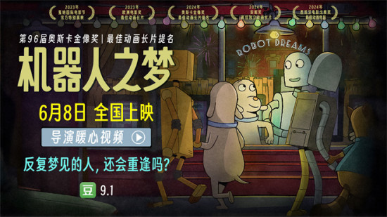 1905电影网讯 电影《机器人之梦》将于6月8日端午档在中国内地上映。这部豆瓣高达9.1分的口碑佳作,是中国大银幕7年来最高口碑动画新片。近日,电影发布终极海报及导演送给中国观众的暖心视频,导演兼编剧巴勃罗·贝格尔真挚表示这部电影是给所爱之人的情书,希望能与中国观众共梦一场。电影由巴勃罗·贝格尔编剧并执导,改编自儿童文学作家萨拉·瓦伦的同名漫画故事,讲述了孤独的小狗与机器人的相遇,在繁华的城市中,他们相互依靠、温暖着彼此。然而一次意外让小狗和机器人遗憾错过,从此他们只能把对彼此的想念藏进梦中。只是,反复梦见的人,还会重逢吗?电影《机器人之梦》点映过后有不少观众发现了电影中的“中国元素”,唐人街的戏份诙谐可爱,《康定情歌》更让国内的观众会心一笑。近日曝光的导演视频中,巴勃罗·贝格尔也表示:“纽约我最喜欢的地方就是唐人街。”电影里,巴勃罗·贝格尔将影片80年代纽约曼哈顿的氛围真实地展现在观众面前,并希望大家能暂时忘掉自己,化身机器人和小狗一起穿越到电影中,用爱与“遗憾”和解。导演还表示,“电影《机器人之梦》不仅仅是我写给纽约的情书,也是一封献给所爱之人的情书。”他相信,每一位真正爱过的人都能对影片感同身受。终极海报中,小狗和机器人牵着当下的伴侣在街头擦肩而过,街边的橱窗倒映出他们曾经彼此陪伴的美好回忆,橱窗中的他们无声地对视,却道尽千言万语。影片中小狗与机器人因为一场意外分隔两地,机器人曾数次在梦中与小狗相见,面对“不能重逢”的现实,橱窗折射的“重逢”或许正是梦想成真的愿景。值得一提的是,电影里没有一句台词。可无声的电影却看哭了全世界的观众。小狗和机器人的相遇、相处、别离与重逢,都让人感同身受到所有人类渴望“爱和陪伴”的情感需求,这种无声的力量直达人心,让人强烈共鸣。电影《机器人之梦》已荣获第96届奥斯卡金像奖最佳动画长片提名等全球共计60余项奖项和提名。本片将于6月8日端午档在中国内地上映,敬请期待!