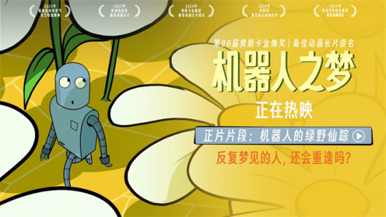 1905电影网讯 电影《机器人之梦》正在全国热映中。近日,影片曝光了“机器人的绿野仙踪”正片片段,该片段致敬经典电影《绿野仙踪》。在梦中,机器人与向日葵一起跳踢踏舞,向日葵随着舞步拼凑出小狗的笑脸场面十分欢快和热烈。电影由巴勃罗·贝格尔编剧并执导,改编自儿童文学作家萨拉·瓦伦的同名漫画,讲述一只孤独的小狗遇到了一个机器人,偌大的城市中,他们相互依靠、温暖彼此,然而一次意外让小狗和机器人遗憾错过,从此他们只能把对彼此的想念藏进梦中的故事。正片片段中的场景是机器人在影片中做的第三个梦。在梦境中,机器人进入了《绿野仙踪》的世界,TA哼着《September》的旋律,脚步轻快地走在黄色路径上,远处是彩虹映衬下的“翡翠城”。突然,周围的向日葵化身为舞者,环绕着机器人跳起了踢踏舞。当俯瞰这些向日葵时,会发现它们排列的图案变换出了各种小狗微笑的头像。机器人跳着刚学会的踢踏舞,朝着小狗家走去,再一次按响了小狗家的门铃。该片段场景致敬了经典影片《绿野仙踪》,一如电影《绿野仙踪》中的翡翠城是桃乐丝对实现回家之梦的渴望。该片中,机器人朝着“翡翠城”迈步则暗示了TA对回到小狗身边的渴望。事实上,机器人的梦都指向了同一个结局:“小狗已经忘了TA,有了自己的生活,与小狗重逢,终究只是一场梦。”小狗与机器人的相处细节折射出了深厚的亲密关系。TA们曾是最好的伙伴,却因不可抗力被迫分开。电影《机器人之梦》自国内上映以来,获得了超高口碑,影片在豆瓣超过11万人打出9.0的高分,位居端午档新片中口碑第一。电影正在全国热映中,献给每一个真正爱过的人。