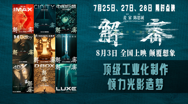 1905电影网讯 近日,电影《解密》发布“造梦”制作特辑和“梦境”版制式系列海报,同时宣布将于7月25日、27日、28日限时点映。“造梦”制作特辑从画面和声音两个主要维度展现了主创团队自我超越,运用先进的电影工业技术齐心协力造梦的过程。同期发布的“梦境”版制式系列海报共计9张,包括IMAX、CINITY、中国巨幕、杜比影院、WANOS、DTS:X、4DX、D-BOX、LUXE这9种特效制式,均展现了电影中瑰丽的梦境大场面,极具天马行空的想象力和身临其境的视听冲击。影片根据茅盾文学奖获奖者麦家的同名小说改编,陈思诚编剧并执导,刘昊然、约翰·库萨克领衔主演,陈道明、吴彦祖、俞飞鸿特别出演,任璐遥、陈雨锶、王雨甜、周游、朱珠主演,全程IMAX特制拍摄。电影《解密》正在火热预售中,将于8月3日全国上映。电影《解密》改编自茅盾文学奖获奖者麦家的同名长篇小说,讲述拥有数学天赋却孤僻脆弱的容金珍为密码破译事业倾尽所有的故事。全新发布的“造梦”制作特辑从戏里戏外展现了众多艺术家一次集体的造梦历程。麦家的同名原著小说享誉全球,首次在文学作品基础进行电影创作的编剧兼导演陈思诚坦言:“我本身是站在巨人的肩膀上进行创作的。”事实上,小说《解密》无论是出版,还是改编电影都历时多年,令麦家不禁感慨:“仿佛不是我在选导演,而是命运在给它选。”此外,他亦给予陈思诚高度评价:“我觉得他不论对小说的理解,还是今天我看到的电影的一种完成度,让我感到意外。”如何打造梦境是电影《解密》的创作难点,需要全体主创同心协力创作一个新的类型,每一个部门都要进行自我超越,去实现电影内外的真正的一场“造梦”。美术指导韩忠指出,对梦境的呈现需要一个强烈的美学,梦境里面的元素,更是戏剧的一部分。联合美术指导马晓飞则将其归纳为“梦感”。制作特辑中展示了红色沙滩梦境场景的拍摄过程,整场戏从制作到拍摄历时90天。不仅美术和道具团队耗时一个月制作出105吨特别染色和固化的红色沙子,并使用造浪机反复进行海浪和红沙的交互测试,摄影团队也与南光携手研制巨型灯架,使用75台LED灯组成灯阵,以为了实现导演想要的夕阳效果。摄影指导曹郁表示,《解密》摄影工作的挑战在于平衡梦境和真实,为此,他与摄影团队选用了“最适合表达梦的工具”:Alexa65 IMAX摄影机配合ARRI DNA镜头,为观众营造出既真实又梦幻的画面质感。十场梦境贯穿整部电影,视效指导魏明也从视效工作的制作量和内容丰富程度阐述了视效工作的难度,制作特辑中展现的视效镜头制作过程令人惊叹不已。此外,导演陈思诚对《解密》的音乐也有着很高要求,不仅花费重金购得披头士乐队作品在亚洲地区的首次授权,将具有反战意识的经典歌曲《我是海象》融入到容金珍的梦境之中,更邀请到著名作曲家洛内·巴尔菲、凯文·里普尔作曲及制作原声音乐。相信前后100多位来自世界各地的音乐家参与配乐录制的电影《解密》原声音乐,必定会带给观众顶级的听觉盛宴。主创团队运用先进的电影工业技术齐心协力地造梦,并建立了一个完整的、科学的、准确的工业化流程。这也让原著作者麦家颇为震撼,表示:“《解密》会给中国电影新的一种状态,新的一种样貌,新的一种未来。”电影是造梦的艺术,而电影《解密》则有十场梦境需要呈现。面对复杂的密码,主人公容金珍从梦中寻觅破译的灵感,这些梦境不止让他找到通往的答案途径,更是其潜意识的具象化,指引其破解人生的密码。此次发布的“梦境”版制式系列海报集中呈现了电影中的梦境大场面。IMAX制式海报采用红色沙滩场景,夺目色彩奇异又瑰丽,漫步其中的希伊斯的身影越发衬托出场景的宏大。CINITY制式海报色调暗沉冷硬,逼仄压抑的密码迷宫揭示了破译密码工作对容金珍精神与心灵的考验。中国巨幕制式海报中,容金珍深陷早期计算机埃尼亚克的围困,体现出人脑与电脑的艰难抗衡。杜比影院制式海报中灯塔的楼梯犹如深不见底的旋涡,令人心惊目眩。WANOS制式海报中,巨大的棋子散布在棋盘之上仿若花灯,未知的危险似从背景阴影里慢慢靠近容金珍与小梅。DTS:X制式海报采用密码迷宫场景,迷失其中的容金珍奋力奔跑寻找破译密码的出口。4DX制式海报中容金珍仰望灯塔顶端,光影交错,如梦似幻。D-BOX制式海报的金黄色调颇为惊艳,芦苇丛和围成一圈的人群队列令容金珍似有所悟。LUXE制式海报采用密码深渊场景,高耸入云的密码墙、汹涌起伏的波涛和无路可走的深渊,皆隐喻容金珍遭遇的困境。梦境交叠,建构出容金珍复杂的潜意识世界,也彰显出主创团队天马行空的想象力和银幕造梦的创造力,恢宏壮美的视觉效果必将带给观众颠覆想象的震撼观影体验。
