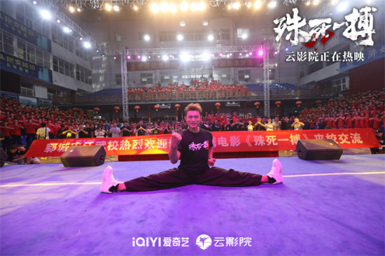 1905电影网讯 “力王回忆杀”、亲授重拳绝技、功夫人传人、一字马合影……8月5日,樊少皇携新电影《殊死一搏》现身山东郓城宋江武术学校,与武校师生交流互动。电影《殊死一搏》讲述为了营救被海外非法组织绑架的养女,平日沉默寡言的厨师老陈(樊少皇饰)不惜揭露自己隐瞒十五年的秘密往事,与正邪难辨警察阿灿(安志杰饰)携手,共同对抗犯罪集团和城市黑恶势力。活动当天,宋江武术学校的学员们齐聚,满怀热情地迎接樊少皇的到来。校方为表欢迎,安排了一场声势浩大的欢迎仪式,两千多名学员们在巨大的演武场上,随着激昂的音乐,迅速变换队形,最后武校学员们一同拉开巨型海报为《殊死一搏》加油助阵。面对眼前这场热情激昂的表演,樊少皇表示赞叹并鼓励:“同学们,加油!”映后见面时樊少皇再次鼓励武校的学员们:“未来的路还很长,过程艰辛才能练好功,希望大家珍惜当下,长大后都是非常美好的回忆!”这份充满力量又不失温情的激励,瞬间点燃了学生们的热情。映后交流环节,樊少皇不仅与宋江武校的学员们分享了自己对电影和角色的理解。还现场亲授学武经验,手把手教学并鼓励学员们坚持武术梦想。交流中一位学员提到影片中的老陈(樊少皇 饰)让自己想起曾经和父亲看DVD的“力王”,樊少皇回应力王和老陈一样都是充满正义感的人。还有一位观众借此机会向樊少皇请教影片中的“成名绝技”,樊少皇不仅耐心回应,还亲自示范起来,动作流畅有力,尽显武术大师的风范。有三个小学员和樊少皇来了一场“武术接力”,樊少皇反向学习小学员的武打招式,他自己调侃道:“功夫后浪推前浪。”活动中,樊少皇谈到此次饰演的角色时道:“老陈开始面对挑衅选择退让,或许让人误以为他‘窝囊’。但当挚爱的人面临威胁时,他会毫不犹豫地挺身而出。”并表示,这就像习武之人一样,不惹事也不怕事,同时还用郓城话重现老陈的经典台词:“无事不惹事,遇事不怕事!”樊少皇还在合影时摆出“一字马”造型,激励武校学员努力练功。