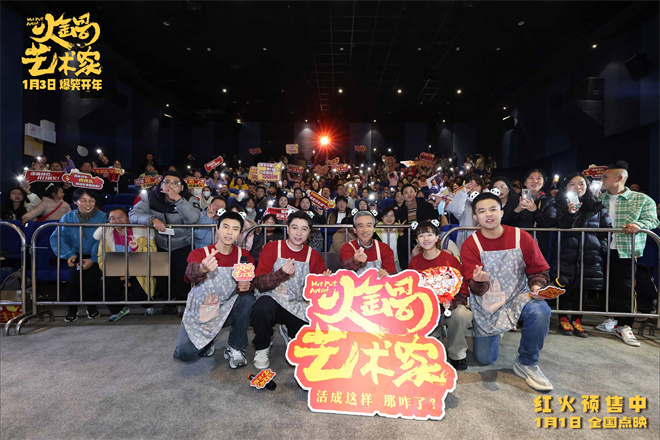 1905电影网讯 近日,喜剧电影《火锅艺术家》路演第一站来到“火锅之都”成都,电影主创崔志佳、焦俊艳、张琪、李昆鹰、刁标现身路演现场,与当地观众欢乐互动,笑谈幕后创作趣事。影片由崔志佳执导,崔志佳、张冠男编剧,崔志佳、焦俊艳、张琪领衔主演,李昆鹰、刁标等主演,宋小宝、乔杉特邀出演,魏翔、艾伦、孙越、文松、潘斌龙特别出演,张子栋、张一鸣、修睿、衣云鹤、卜钰、李会长、王喳喳、古筝友情出演,将于1月1日全国点映,1月3日全国公映。此前已在全国多个城市开启点映,猫眼平台评分达9.5分。在电影《火锅艺术家》中,导演崔志佳将火锅与人生百态巧妙融合,映后互动中崔志佳表示其写剧本时从自身生活感触出发,因个人也特别爱吃四川火锅,所以将火锅与自己的导演身份进行碰撞,想表达出自己当下对年龄的困惑和对生活的理解。影片的领衔主演焦俊艳也在路演现场表达了她对片名的独特理解,称片名中“火锅”代表生活的琐碎,而“艺术”则代表诗跟远方,但最后的“家”则是每个人永远的归宿。而在影片里扮演袁媛父亲袁飞的张琪更是在现场和热情的成都观众分享自己心中的火锅情怀,并表示“心火不灭,生活和理想的火锅永远沸腾!”。在影片中奉献了“砸酒瓶”“飞毛腿”等爆笑场面的主演李昆鹰、刁标也身着超大火锅玩偶服现身路演映后,与观众亲切互动。和崔志佳有着十多年友谊的李昆鹰透露影片中有着非常多的即兴桥段,希望观众喜欢这些“小惊喜”,在看完电影之后乐乐呵呵走出影院。而在电影中上演“玩命”跑的毛毛一角被不少观众心疼,其扮演者刁标表示想把最真诚的喜剧效果呈现给大家,所以无论跑多少次都值得!