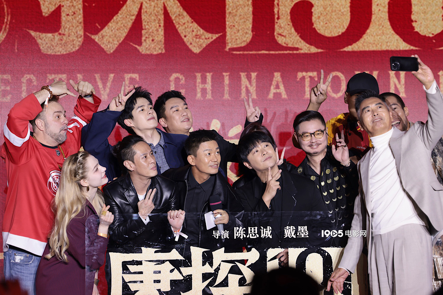 1905电影网讯 1月25日,春节档电影《唐探1900》举行新春发布会暨十岁生日宴,导演陈思诚、戴墨携演员王宝强、刘昊然、周润发、魏翔等亮相。主创分享新片创作体会、回顾《唐探》系列走过的十年,新老朋友欢聚一堂,共同庆祝《唐探》十周年生日。导演陈思诚表示,《唐探1900》用中国速度创造奇迹,前期花费9个月时间,在300多亩地搭建了一座1:1还原的旧金山城市场景。他也感谢这个时代能给电影人实现梦想的机会,影片背后有非常厚重的历史表达,溯源了唐人街的由来和华工的艰苦历史。《唐探1900》将于全球多个国家和地区同步上映,陈思诚看到很多海外同胞不能回家过年的留言,忍不住落泪,相信他们在海外过年看《唐探1900》会有不一样的感受。周润发首次加入《唐探》系列电影,出演唐人街协盛堂堂主白轩龄。他提到30年前曾计划与胡金铨导演合作电影《华工血泪史》,胡金铨导演在开拍前却不幸离世。没想到,这次他能出演白轩龄这个代表华工的角色,30年后终于圆梦。陈思诚透露,片中发哥有一句台词振聋发聩,“他说如果你们真能改变什么,我就不用到人家门口讨饭吃。”陈思诚认为这个故事对当下仍然非常有意义,“希望以史为鉴,中国永远强大下去,唯有自强才能不息。”周润发说“2024年是我走运的一年,遇到了这么好的角色”,他也和陈思诚约定继续合作《唐探》系列电影,“希望十年、二十年、三十年后,我90岁还能再拍《唐探》”。《唐探》在这十年间,拍了3部和1部外传电影,系列搭档王宝强和刘昊然回顾十年历程感慨万千,这十年承载了他们非常多美好的回忆。刘昊然坦言,这十年他的变化最大。17岁演第一部《唐人街探案》电影,当时还在准备高考,不是职业演员,只演过《北京爱情故事》,很幸运在观众的陪伴下成长。他也很幸运每次电影上映后都能获得观众的热烈支持与讨论,因为大家喜欢《唐探》才能一直拍下去,他也非常期待下一个十年。
