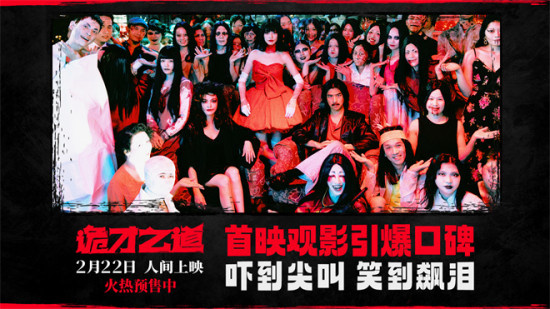 1905电影网讯 近日,惊恐喜剧电影《诡才之道》举办“人间超前观影派对”首映观影活动。影片始于一个编剧的清奇脑洞:如果装“鬼”吓人也有KPI,会是一个怎样的精彩故事?陈柏霖、张榕容、王净逐梦“鬼”艺圈,打造独一无二的都市传说!本片是《周处除三害》监制全新作品,目前已收获豆瓣7.6分、IMDb7.5分的高分。日前,电影《诡才之道》提名第43届香港电影金像奖“最佳亚洲华语电影”,并已在第49届多伦多国际电影节、第54届鹿特丹国际电影节、第18届亚洲电影大奖等国际电影节、影展上崭露头角,凭借脑洞大开的鬼畜设定、感官刺激拉满的多元类型风格收获热烈反响。片中,陈柏霖饰演专业经纪Makoto,帅哥变身搞笑怪蜀黍,贱感十足;张榕容饰演吓人天后凯萨琳,揭秘“冥”星背后不为人知的一面;王净饰演受“魂飞魄散”危机困扰的菜鸟“同学”,内心戏满满,撩拨观众心弦。众“鬼”吓人冲业绩、拼流量、争番位,吓人手法五花八门,誓要吓出“冥”堂!设定清奇的喜剧包装下还蕴藏着电影对于当代年轻人的生存、内卷等问题的反思,在欢乐与惊吓之余,为观众们带来一丝感动和慰藉。电影《诡才之道》将于2月22日全国上映。