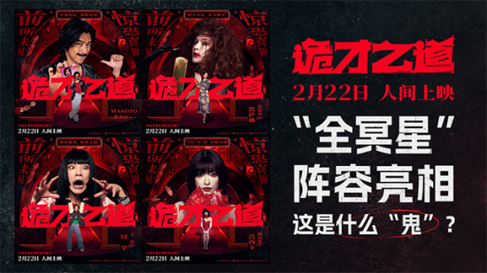 1905电影网讯 近日,电影《诡才之道》发布“这是什么鬼”角色海报,陈柏霖、张榕容、王净、姚以缇全“冥”星阵容亮相,惊笑演绎“逐梦鬼艺圈”。究竟谁才能吓出“冥”堂,打造独一无二的都市传说?该片是《周处除三害》监制的全新爆款力作,口碑表现不俗,在豆瓣、IMDb上均获得7.4分。电影将于2月22日人间大银幕上映,敬请期待!血色笼罩下的角色海报,四位鬼才闪亮登场,画风迥异尽显角色特点,细节丰富,看点十足。海报中,专业挖掘潜力“冥”星的鬼才经纪人Makoto(陈柏霖 饰)搞怪亮相,留着夸张胡须,一副90年代复古造型,手持名片,露出笑容,“谜之自信”的状态不禁让人对这位经纪的专业度存疑。过气“冥”星凯萨琳(张榕容 饰)手持折扇,优雅端庄,气场大开,背景中她手捧奖杯,造型充满舞台张力,身为吓人天后的傲人气质立显。废材新秀“同学”(王净 饰)则是完全不同的少女画风,朴素日常的造型十分不起眼,另一身黑长直水手服装扮虽是血迹斑驳,也努力摆出鬼脸和手势试图吓到人,却仍青涩笨拙,略显呆萌可爱。凭借诅咒视频吓爆全网的当红“冥”星洁西卡(姚以缇 饰)一袭红衣造型,搭配精致妆容,一副乖巧模样,冰冷的眼神中却流露出几分危险感,让人不寒而栗。全“冥”星阵容梦幻集结,鬼才出道,究竟谁能脱颖而出?自称专业的鬼才经纪人能否带菜鸟“同学”成功逆袭?凯萨琳和洁西卡,昔日实力天后和互联网新宠儿之间的pk,将上演怎样的好戏?《诡才之道》是《周处除三害》监制的又一新作,融合多种类型元素,为观众们带来一部前所未见的惊恐喜剧。影片源自于一个编剧的清奇脑洞:如果装“鬼”吓人也有KPI,会是一个怎样的精彩故事?在这个“死人比活人还累”的奇异世界里,吓人成为最重要的才华,只有吓出“冥”堂才能“阴魂不散”。选秀出道、红毯亮相、媒体采访、奖项评比……各种娱乐现象与现实世界一一对应,充满解构意味。海报中的各大主角也在这样新奇的世界观设定下闪亮登场。在“旺来温泉大饭店”414号房里,鬼才经纪人Makoto与过气“冥”星凯萨琳正在为培养菜鸟“同学”发愁。而面对当红的强大对手洁西卡,三位必须携手合作,吓出风格、吓出水平,打造新的都市传说!吓人场景诡异氛围拉满,惊悚元素令人期待,搭配无厘头的喜剧风格,恶搞趣味十足。