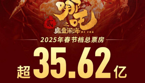 1905电影网讯 据票务平台数据显示,电影《哪吒之魔童闹海》春节档(档期内票房)总票房破35.62亿,刷新中国影史春节档电影票房纪录,超《唐人街探案3》春节档(档期内票房)票房成绩,成为中国影史春节档(档期内票房)票房冠军!