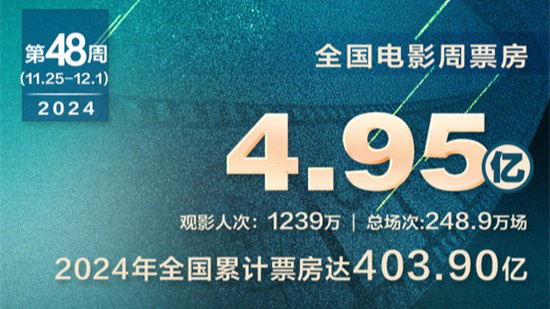 1905电影网讯 第48周(11.25-12.1)全国电影周票房4.95亿,观影人次超1239万,全年电影票房累计403.90亿元。《好东西》以2.34亿周票房蝉联周榜冠军,并连续10天成票房日冠。新片《海洋奇缘2》夺得亚军,周票房4704万。《蜡笔小新:我们的恐龙日记》以3753万周票房位列第三。