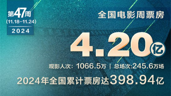 1905电影网讯 2024年第47周(11.18-11.24)全国电影周票房4.20亿,观影人次超1066万,全年电影票房累计398.94亿元。《好东西》上映次日票房破亿,以1.43亿周票房斩获本周冠军。《胜券在握》夺得亚军,周票房7354万。新片《蜡笔小新:我们的恐龙日记》以6251万周票房为列第三。